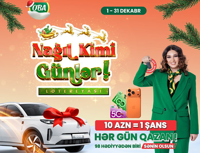 Dəyərli qonşum, Nağıl kimi günlərə hazırsan?! 1 - 31 Dekabr tarixlərində OBA marketlər şəbəkəsindən hər 10 AZN-lik alış səni xəyallarına qovuşduracaq!