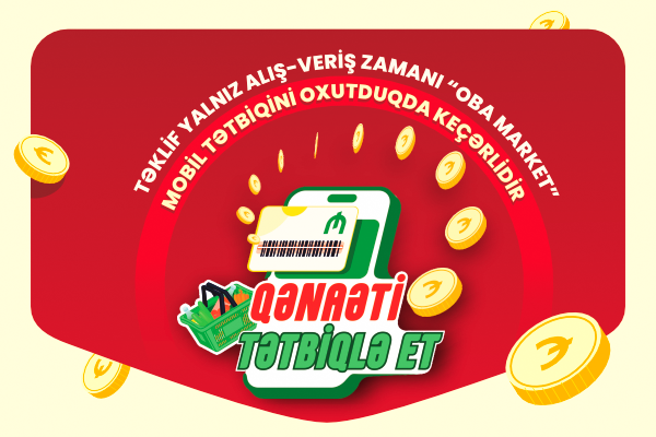 "OBA Market" tətbiq istifadəçilərinə şad xəbər! Elə indi sizə ən yaxın "OBA"ya tələsin və yalnız mobil tətbiqlə alış-veriş zamanı keçərli olan endirimlərdən faydalanın!